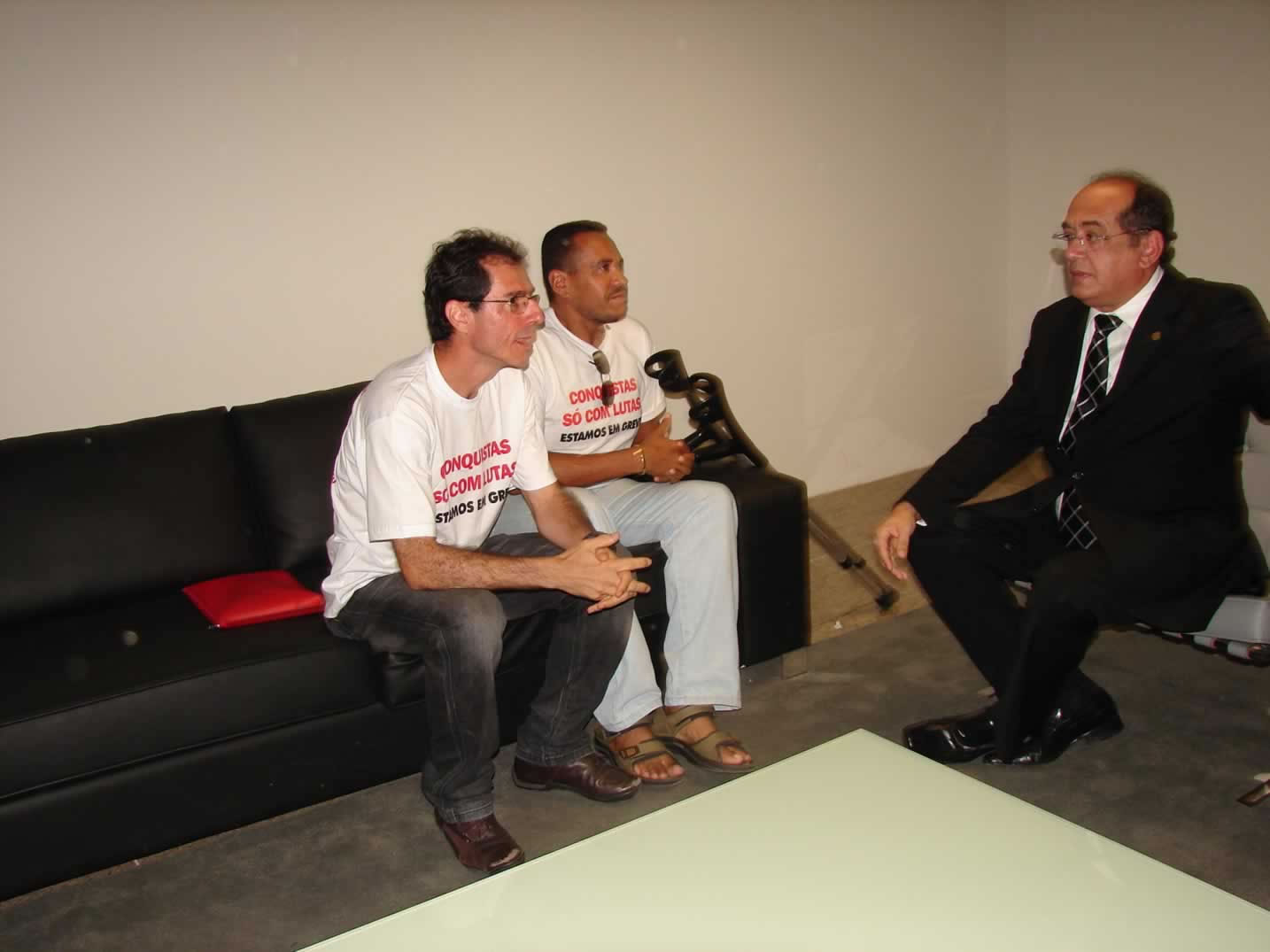O ministro Gilmar Mendes, presidente do Supremo Tribunal Federal e do Conselho Nacional de Justiça, quebrou o protocolo e antes de ter acesso ao prédio do Tribunal de Justiça de Alagoas, hoje pela manhã, recebeu dois integrantes do movimento de greve dos funcionários da Justiça Federal. Apesar da cobrança para que seja enviado pelo STF ao Congresso Nacional a revisão do projeto de lei de revisão salarial, está difícil o processo ter um final feliz.