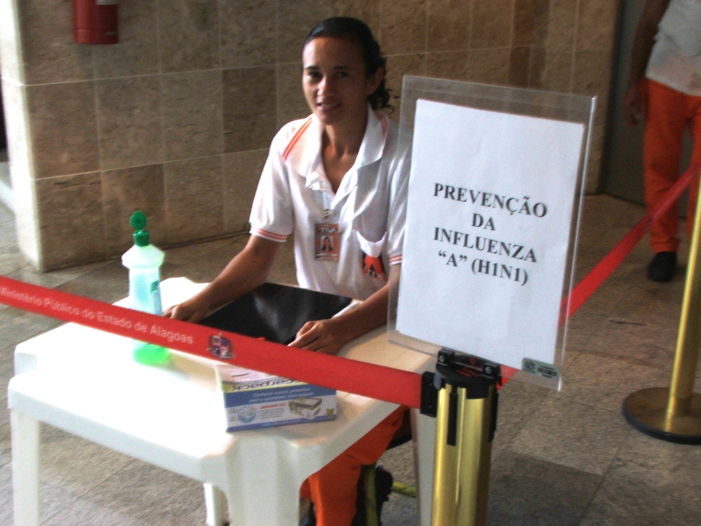 Vejo nas ruas em recepções de hospitais algumas pessoas usando máscara cirúrgica descartável, buscando evitar o contágio da gripe A (H1N1). Na sede do Ministério Público Estadual a campanha de prevenção é vista logo na recepção. Álcool para a limpeza das mãos e máscara cirúrgica para todos que circulam no MPE.